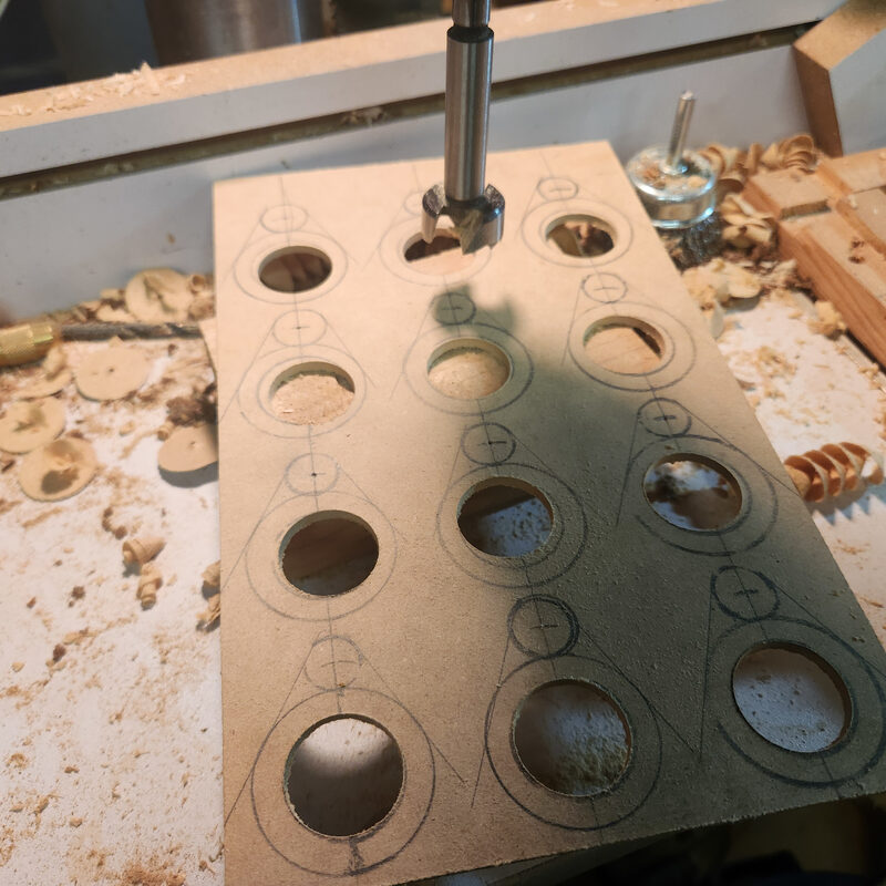 And yes, I know the drilling is off center. It doesn’t matter and I just didn’t bother to carefully center the fostner bit.