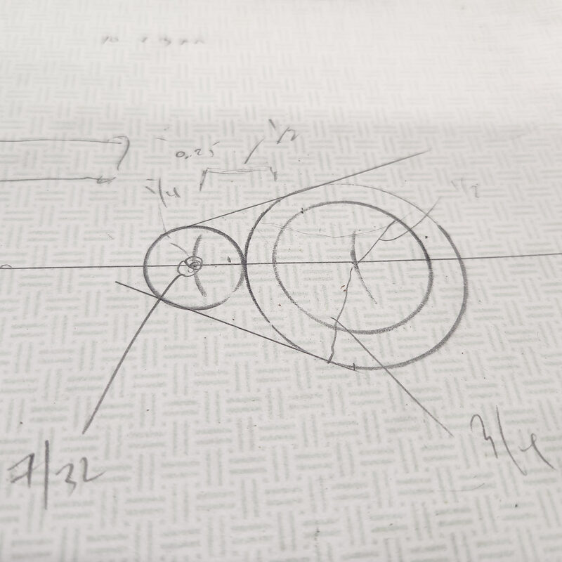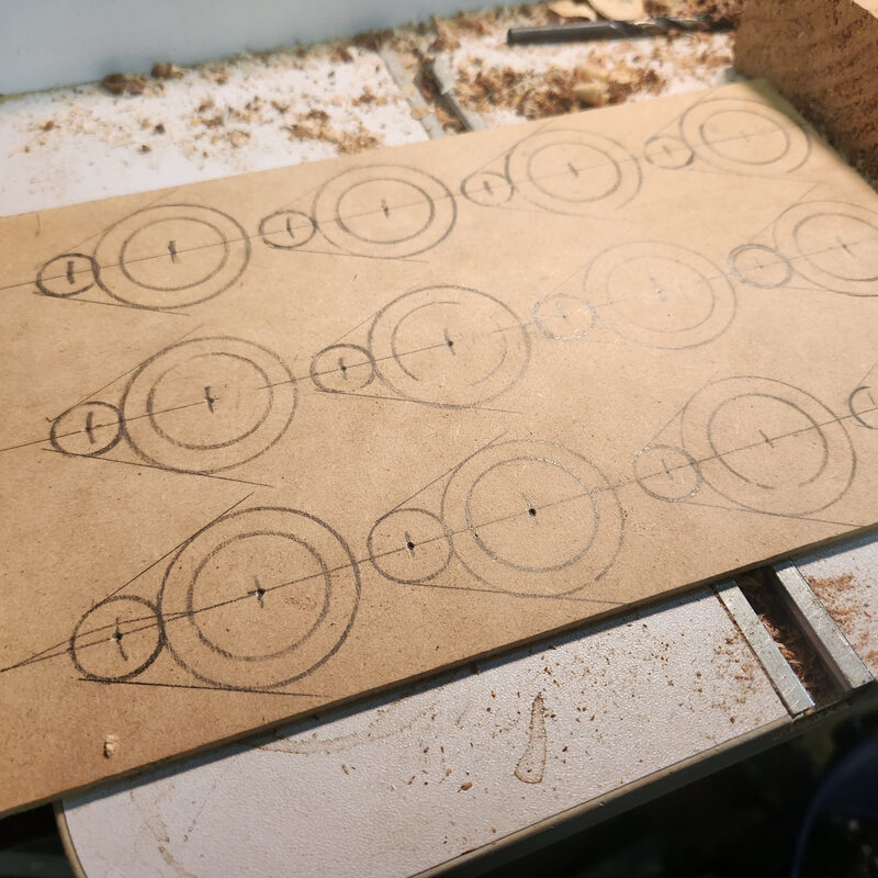 And then it hit me. The problem I was facing…well, the potential future problem I might be facing had a solution. It was right here, and either I came up with a solution and forgot, or I intended this for an entirely different problem. I grabbed a pencil and compass and began playing with the sketched design. It did not take long before I could generate an outline that would be reproducible, and just might be functional. The drawing only required 2 compass measurement and a straight center line.
