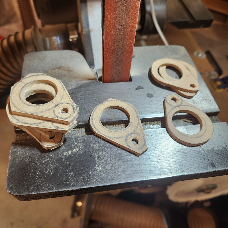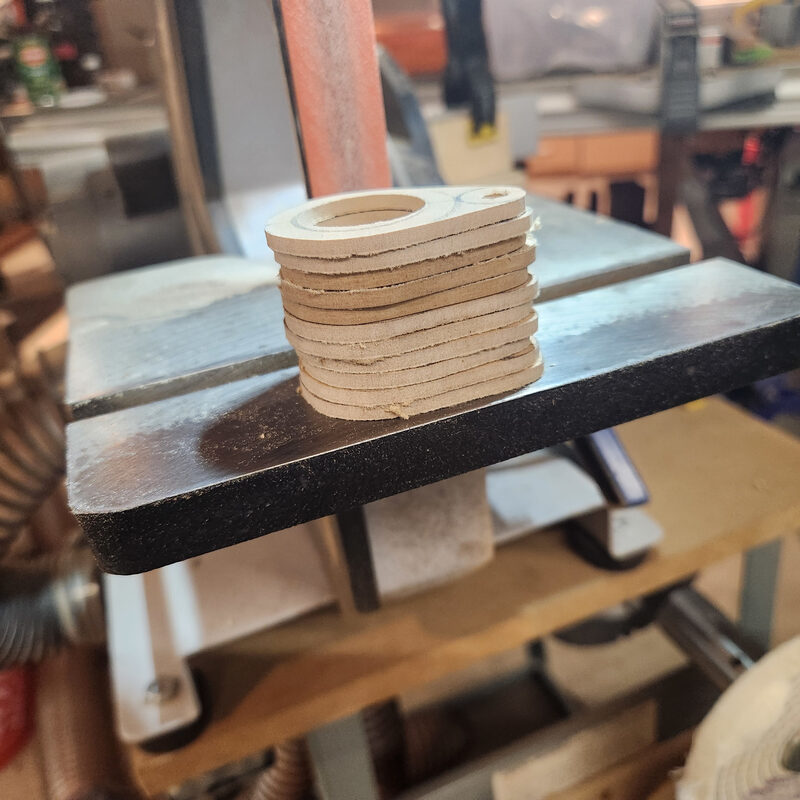 Finally, the whole stack moved to the 1 inch belt sander for final shaping. Soon I had a whole stack of do hickeys ready for service.